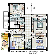 Ferienwohnung im Erdgeschoss für bis zu 6 Personen, 130 qm